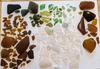 The most common colour found was frosted clear, amber and brown. But also Dark olive, lime green, ice blue, sea-green. There is a mixture of well rounded and some still in the aging process!