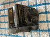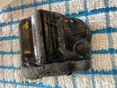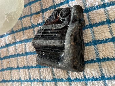 Chunky brown/ black piece looks like bottom of bottle I think