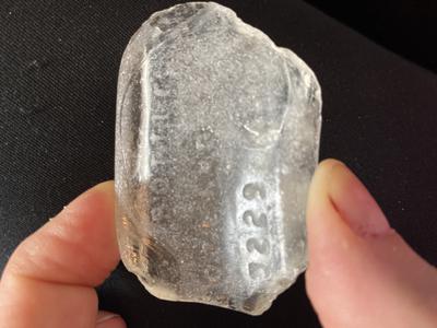 Clear glass bottle made in Scotland with number on