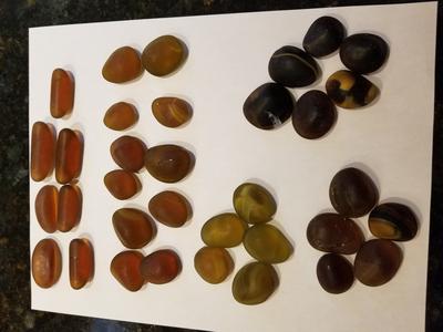This sea glass all came from Rockaway Beach, Oregon. A lot of them have a similar dome shape, and we were curious as to what these were, before they got polished by the sea.