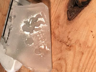 The thickness of the fragment is also interesting, ranging from 3/16" at the thinnest, through 5/16" to 1/8" on the other end. The curvature is also interesting, as it resembles the bottom of a wide bottle or jar.