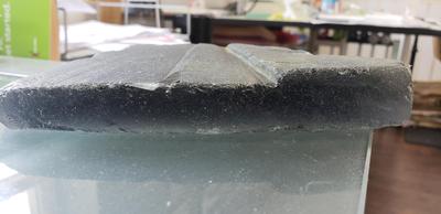 It is 6 inches by 5 inches in length and it is one inch thick.