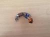 One is orange and one is pink or salmon, while the rest are blue or possibly blue violet.